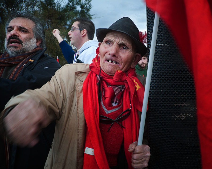Abbandoni i tuoi consueti BN per abbracciare il colore in maniera decisamente appropriata in questo caso. Il colore è parte integrante della scena ed anche se il simbolo è solo accennato e si intravede appena nelle pieghe del fazzoletto, è chiara l'ispirazione ideologica del protagonista.