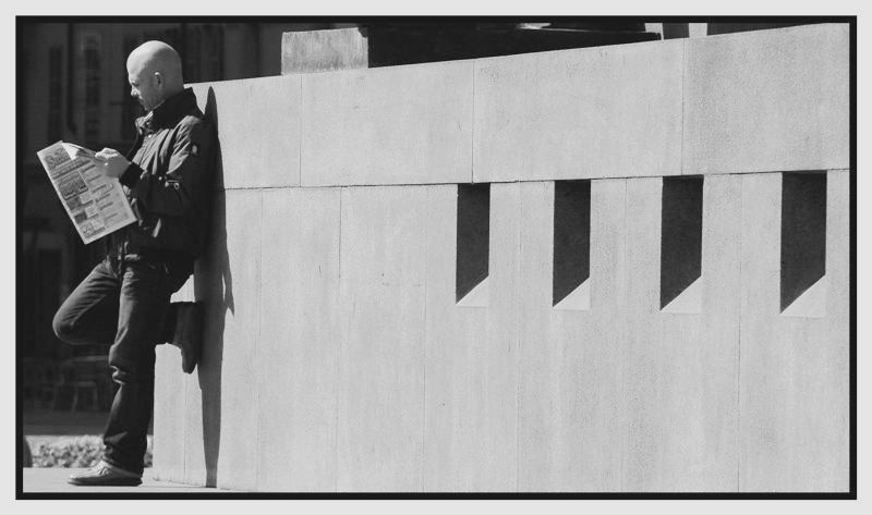 E' una scena che mi lascia qualche dubbio, l'inquadratura è stata ritagliata intorno agli elementi della scena includendo solo il protagonista e quelle fessure sul muro,