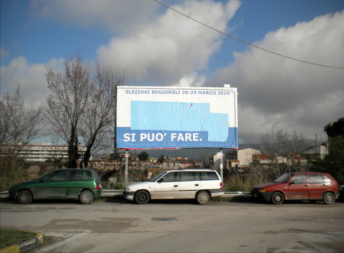 si può fare (3)...(la mia versione...) auto di piccola-media cilindrata, sporche, lasciate a sè stesse che continuano a macinare km. su km. che una casualità ha voluto essere parcheggiate in questo modo e sotto questo cartellone pubblicitario....auto magari prese a rate....(è così che funziona oramai no?)...ma auto che adempiono sempre al loro compito; auto appartenenti ad un certo ceto sociale sicuramente....che come le auto...lavora, produce e fatica....e forse....è la base della vera Italia...