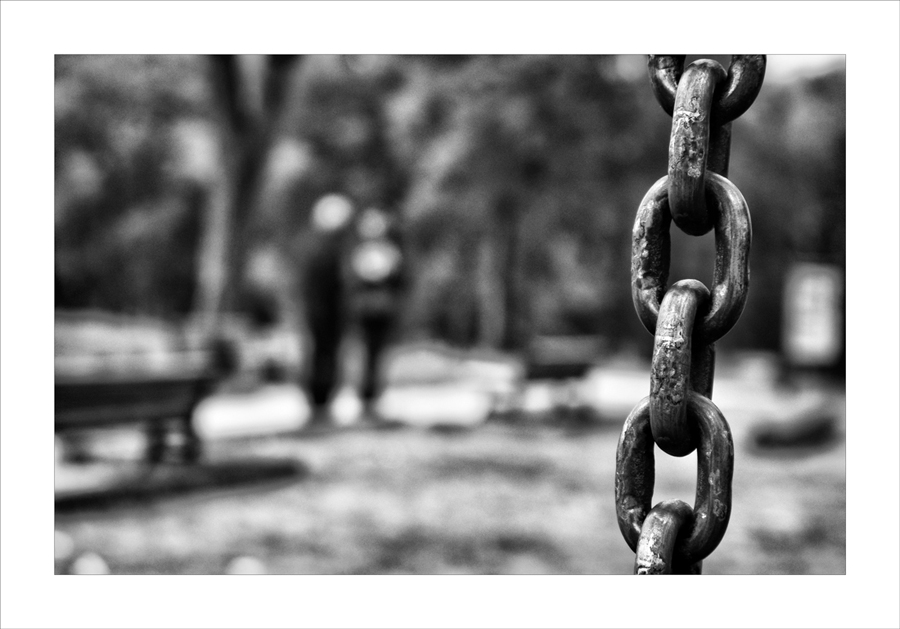A me piace pensare che la catena sia simbolo dell'amore tra le due figure indistinte sullo sfondo...