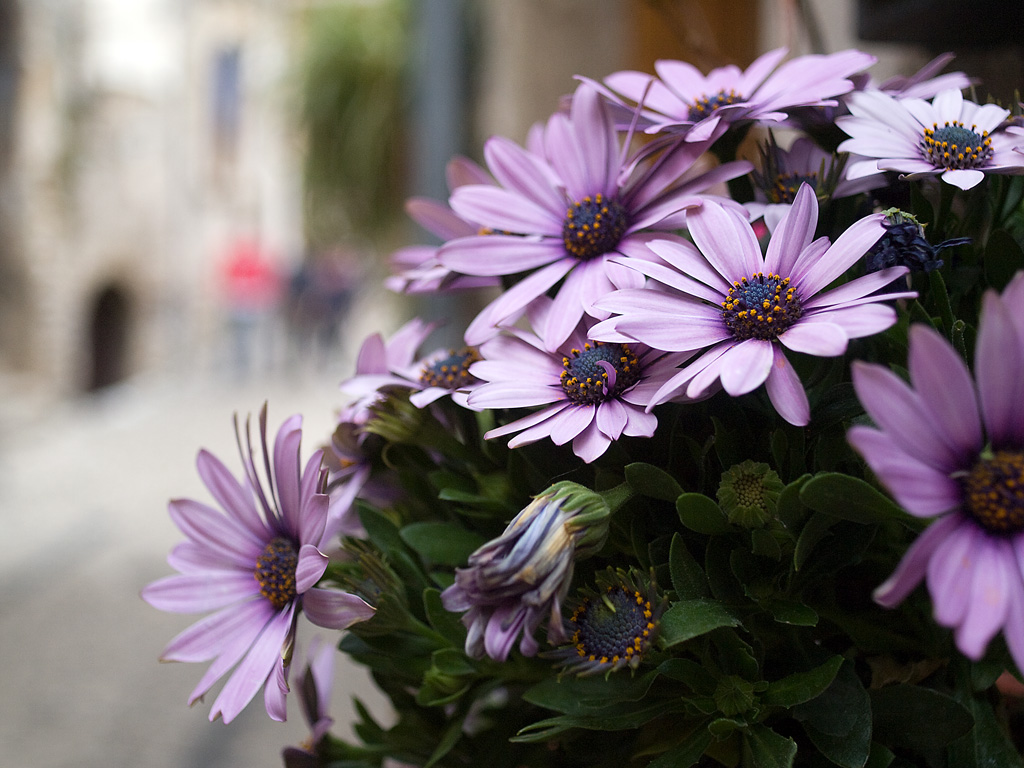 Pur rimanendo la casa sfocata a sx la quale ci può stare, se osserviamo il fotogramma come un quadro in cui un vaso di fiori sporgente da una finestra viene ripreso nel contesto di quello che lo circonda. Mi piace meno la presenza umana sullo sfondo, quella maglia rossa distrae troppo l'attenzione. Forse era meglio aspettare che passassero.