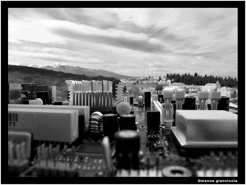 L'unico che ci è andato vicino è stato caracol anche se mi ha dato il mio odiato uno che ribadisco si dovrebbe dare a chi non ha il coraggio di mettersi in gioco!come l'interrogato che non si alza dalla sedia!tornadno allo scatto praticamente fondendo la motherboard con lo sfondo volevo far immaginare che lo scatto era stato fatto da un'elicottero appunto dall'alto verso il basso! mi rendo conto che è scarso di contenuto ma mi piaceva l'effetto che ho tirato fuori e ho deciso di partecipare!Come dicevo sopra l'unico dubbio che mi ha tormentato è stato il viraggio o no verso un colore appunto extraterrestre o che cmq riconduceva ad un mondo fantasy!ma alla fine ho optato per il bw!
