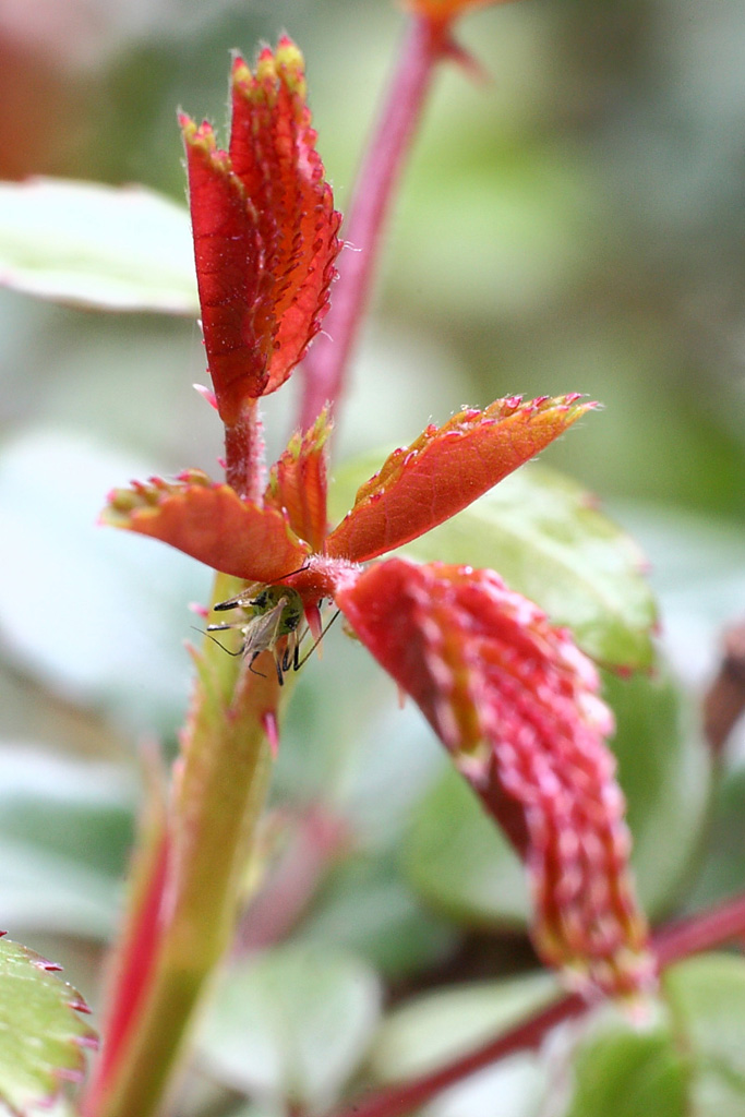 Un insettino così ripreso lateralmente contro uno sfondo più lontano,
