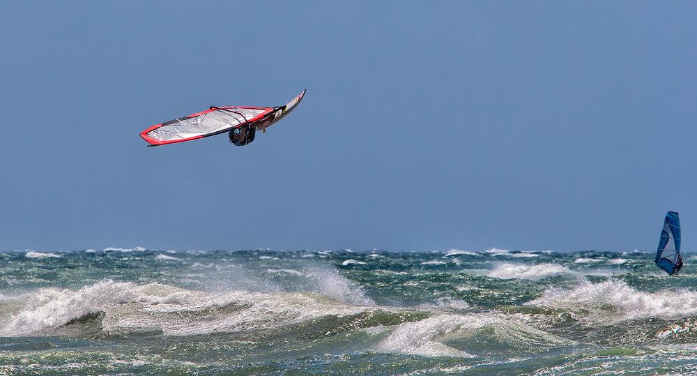 In questo caso, avrei provato un'inquadratura verticale, con il windsurf a rendere interessante la porzione superiore dell'immagine ed il mare a rendere stabile ed equilibrato il tutto