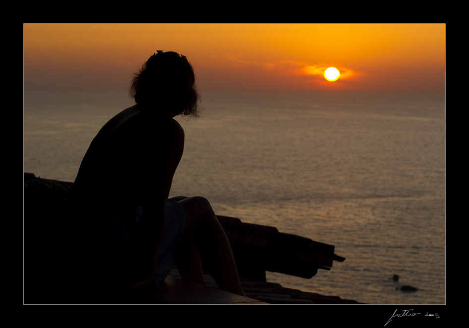 Sono affascinato da questo tipo di scatti, il tramonto e le sue sfumature sono sempre incantevoli e poi quando c'è una persona che lo stà osserando il tutto prende vita come per magia