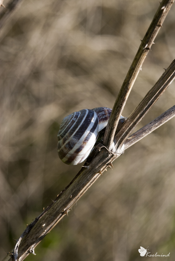Chiocciola ancora nel suo guscio, si scalda al sole.