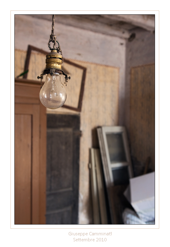 | Un frammento di una location che sicuramente si presta bene per un reportage. Anche se con diversi elementi in scena, la composizione sembra ben curata, forse non si sarebbe potuto fare di meglio, idem per la scelta della messa a fuoco sulla lampadina, penso sia stata la scelta migliore. |