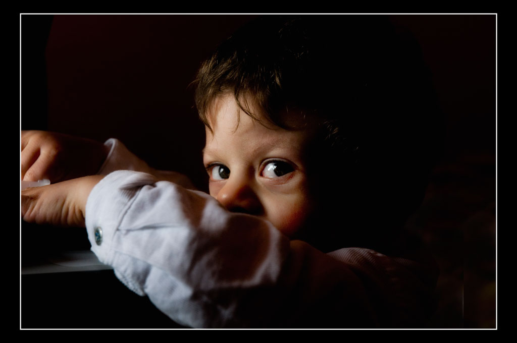 A me questa luce e questo sguardo piacciono. Complimenti. Se posso...e te lo dice uno che per tagliare...un po' più a sx, includendo nella foto, anche le mani del bambino ( a mio modesto parere). Saluti.