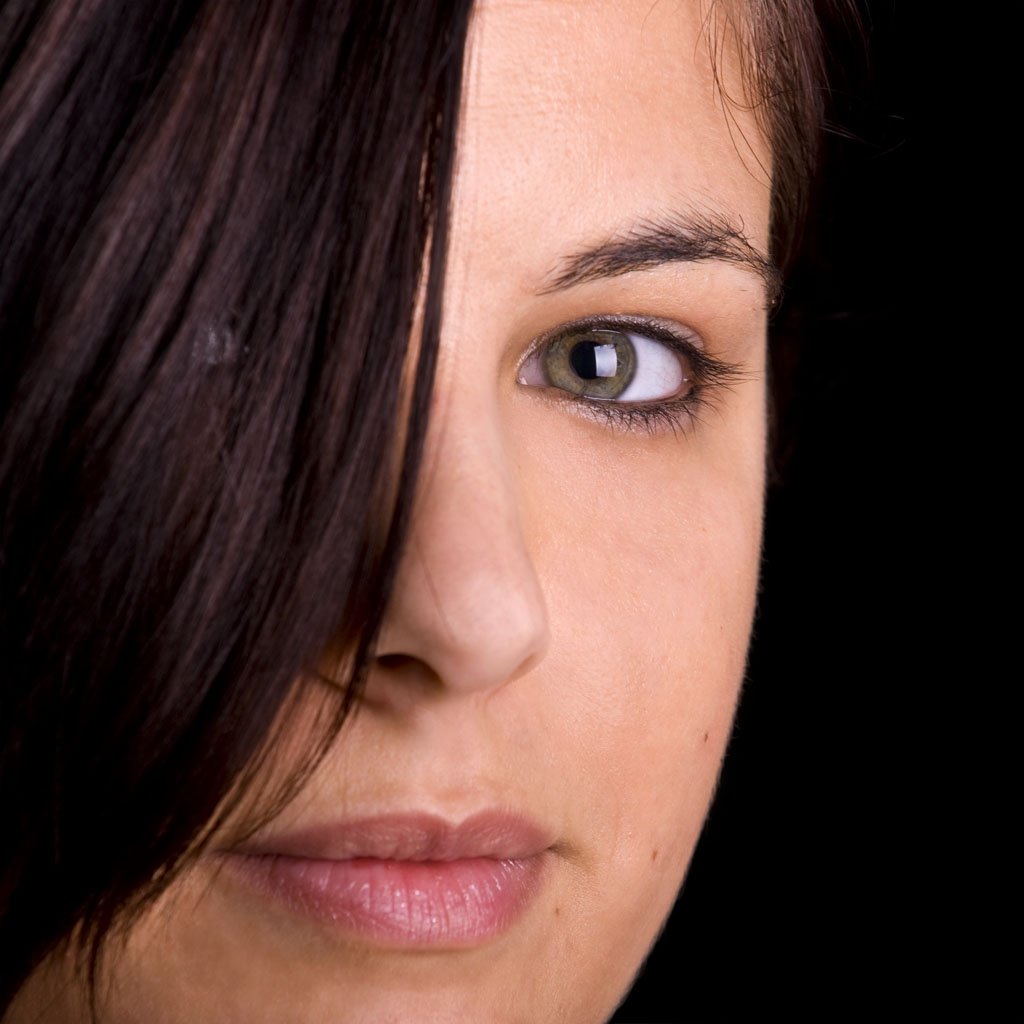 In questo primo piano molto stretto della bellissima Erika Giommarini ho cercato di mettere in evidenza gli occhi giocando con le curve dei capelli e del volto.
