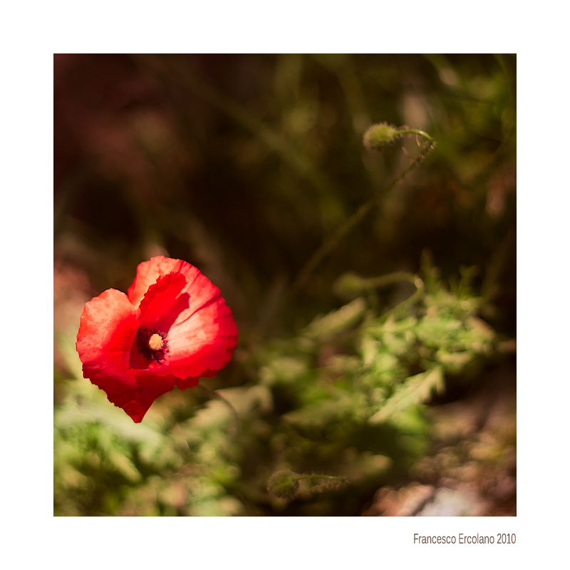 Data la delicatezza del soggetto, qualche punto in meno di luce e forse anche di contrasto, avrebbe valorizzato il bel cuore nitido del papavero, la forza della immagine, dando anche maggior morbidezza ad uno sfondo, volutamente comprimario, ma forse un po' troppo articolato .
