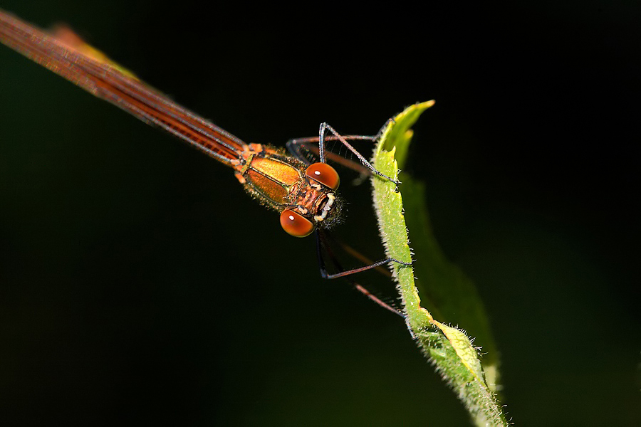 Una insolita prospettiva per una delle tue damigelle addomesticate... la maf sugli occhi è ottima, il taglio di parte del soggetto però non mi convince appieno...  _________________ Massimo |