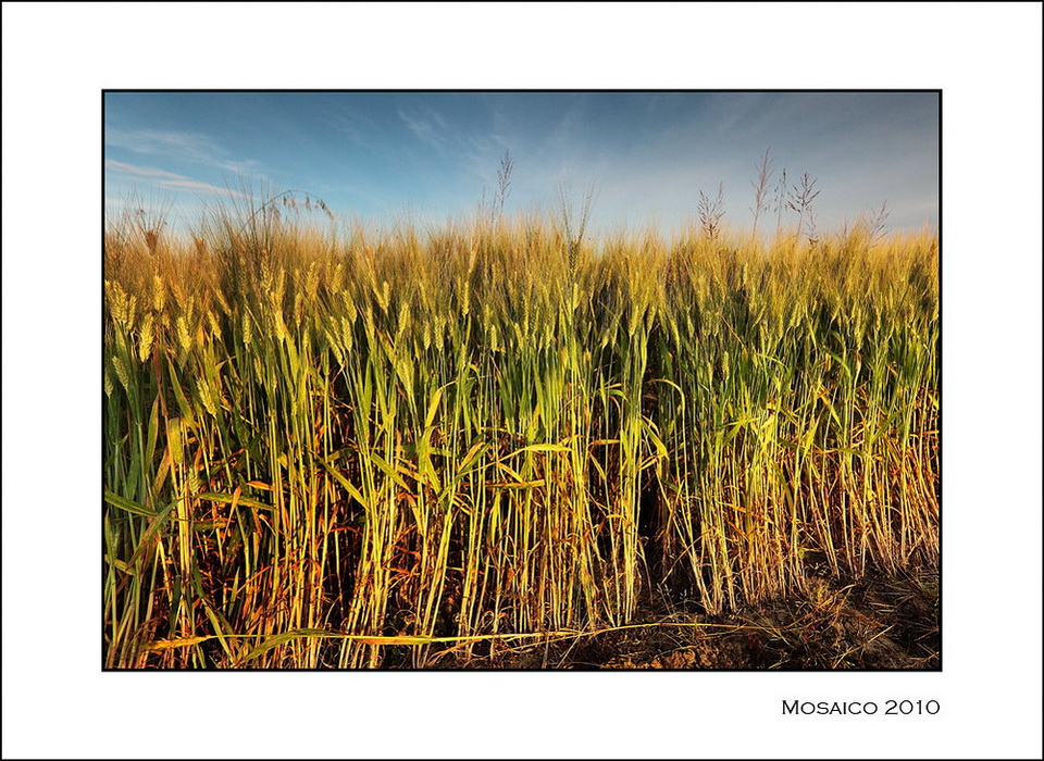 @ Clara: Poi hai lascaito un trangolino di verde in basso, io , forse, avrei tentato uno scatto perfettamente forntale, solo cielo e grano contrapposti. ho lasciato un pò di angolazione perchè in questa posizione la luce mi sembrava migliore.