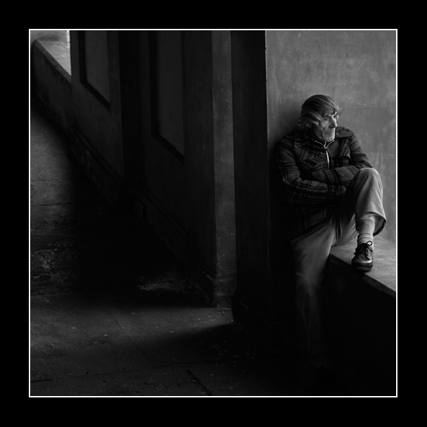 Mi piace molto, amp eliminata la parte vuota la foto ne perderebbe molto: è quanto mi sembra dare l'idea di occasioni perdute, su cui il signore rimugina...
