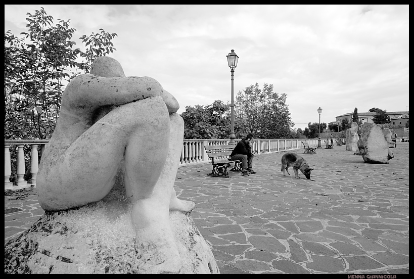 Comunque parliamoci chiaro.. questa è stata fatta sul momento, trovandosi lì; con un appostamento o tornandoci si sarebbe sicuramente trovato qualcosa da accoppiare in maniera ancora più forte alle bizzarre statue; quindi è comunque valida la forma mentis che ha condotto allo scatto.