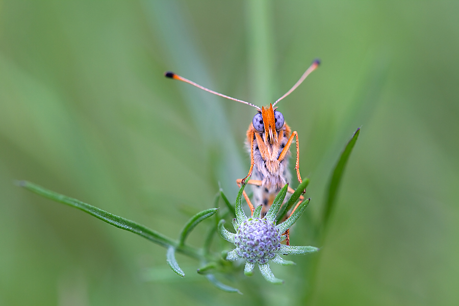 Bella l'inquadratura dall'alto e precisa la maf sugli occhi della farfalla. Gradevole la tonalità verde dello sfondo  _________________