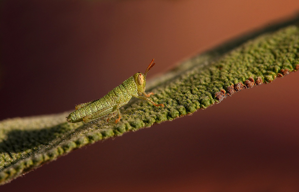 Innanzitutto buona domenica e complimenti per il tuo scatto festivo! Le tonalità dei tuoi scatti ormai sono leggenda, qui è ottima anche la composizione, con una bella diagonale creata dalla foglia di salvia... conoscendo le dimensioni del piccoletto, complimenti doppi!