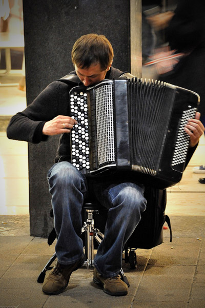 Il piede destro leggermente alzato , segna o crea il ritmo (non sono un musicista non conosco i termini adatti), la cadenza e la bravura di chi è abituato a suonare da solo.