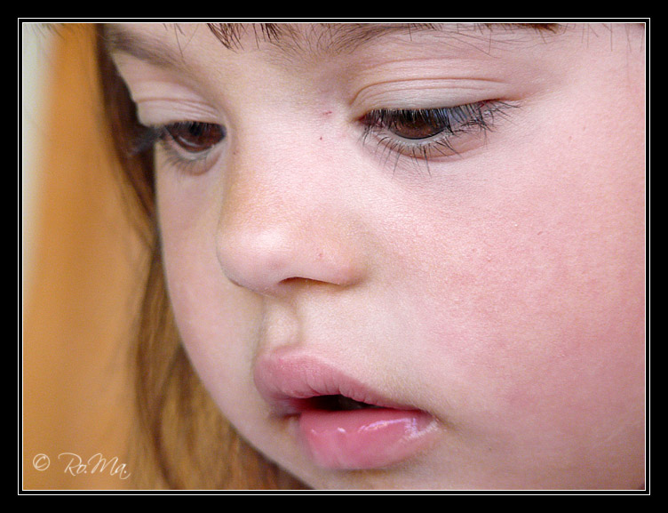 Guardandola attentamente ho visto che era un po' chiara così ho provato Luminosità -15 e contrasto +10, ho aggiunto anche una leggerissima maschera di contrasto (0,4) sul canale luminosità e, per finire, mi sono divertito a togliere due o tre piccole macchie vicino all'occhio.