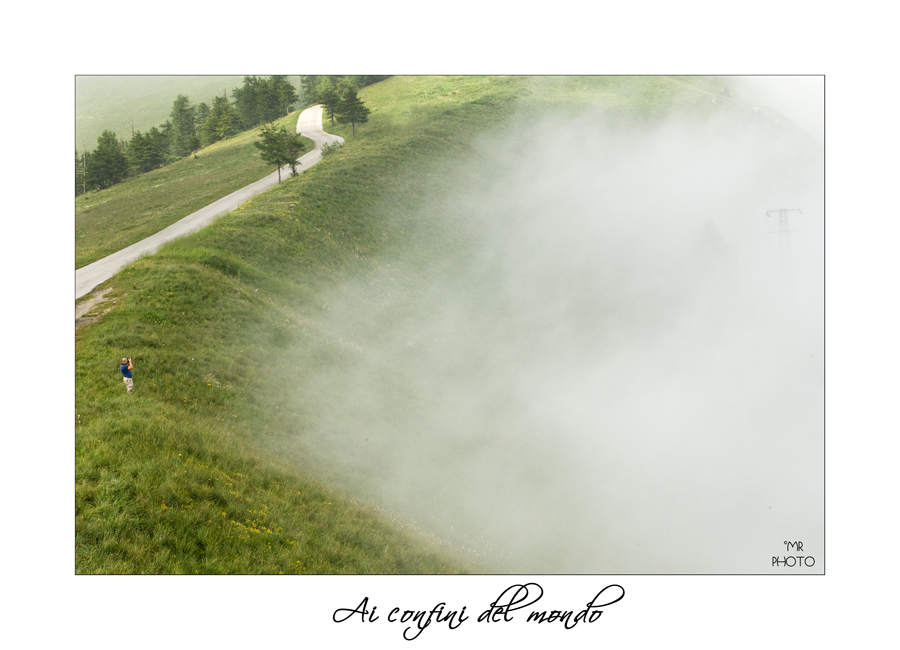 La nube si espande morbidamente, silenziosamente, sta per avvolgere tutto il pendio.... Restano sparazzi di verde e la ottima inclusione della stradina serpeggiaqnte, chiara come the fog in arrivo, che argina l'immagiene e salva i confini della terra conosciuta.