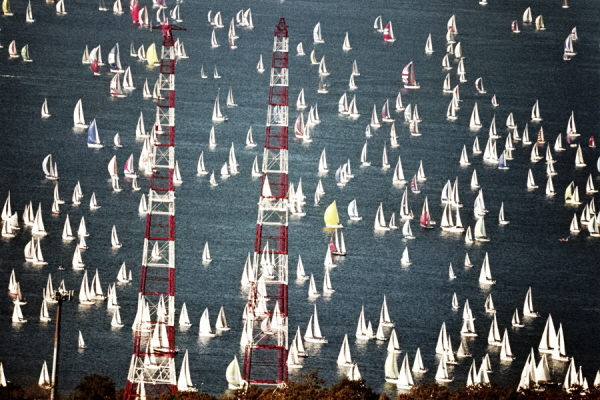 ...con i due tralicci a controllare l'ordinato esodo di questa moltitudine di imbarcazioni....