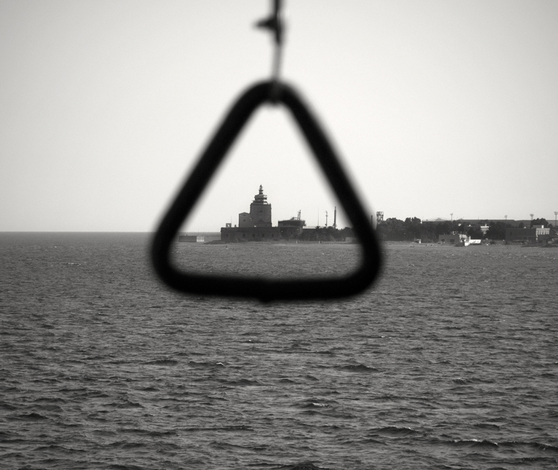 Usi il triangolo appeso a qialcosa che non ci è dato divedere, come uno strumento atto a mettere in evidenza il punto saliente dell'immagine che effettivamente senza sarebbe piuttosto anonima.
