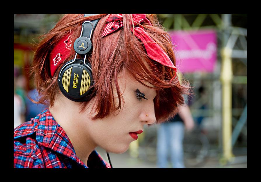 La cuffia e lo sguardo che ignora completamente il fotografo, voglia di isolarsi all'ennesima potenza.