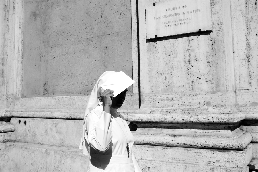 Vedo solo una suora che si ripara dal sole. Alla prossima.