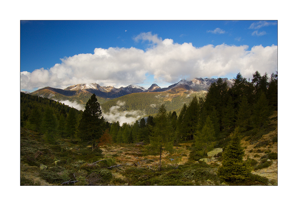 Purtroppo gli alberi scuri sono una mancanza tecnica di equipaggiamento:nello scatto ho utilizzato un filtro GND cokin con una gradazione hard(netta) mentre per i paesaggi montani sono più adatti quelli soft...che però sono un acquisto che devo ancora effettuare(costano un bel po'...)