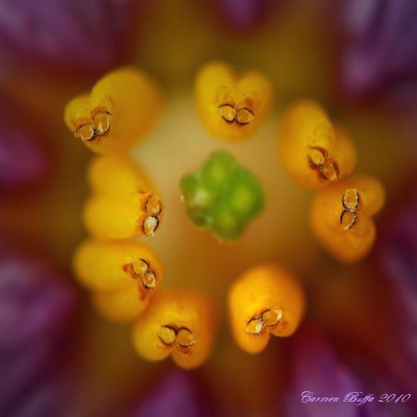 Avete mai visto il fiorellino della melanzana? Questi sono i pistilli..gli occhietti non si vedono ad occhio nudo ..sembrano delle creature sedute attorno a un tavolo rotondo e aspettano da mangiare...nn vi fanno tenerezza?