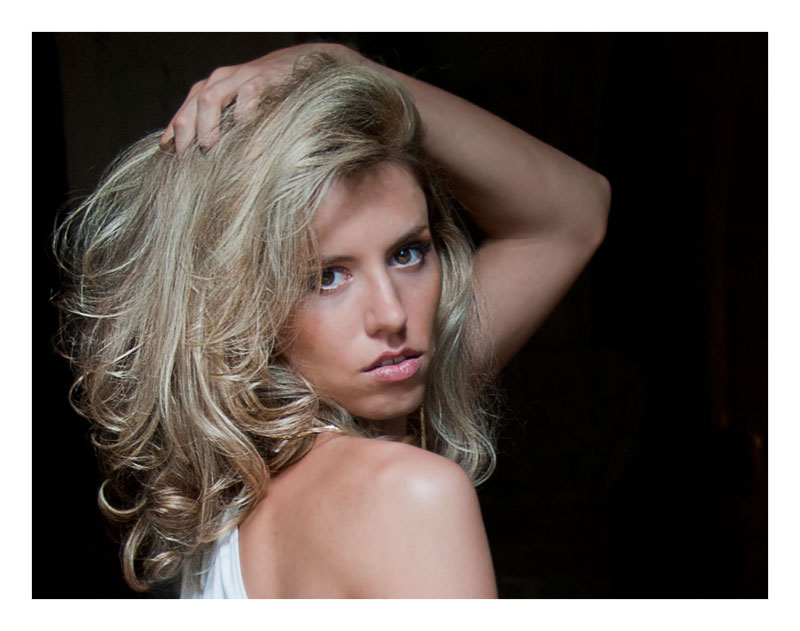 trovo invece un po penalizzante la posizione del braccio (io le avrei chiesto in questa posizione di scompigliarsi i capelli o meglio di di tenere fra le dita una ciocca e di mordicchiarla) e l'assenza dello sfondo che appiattisce un po lo scatto.