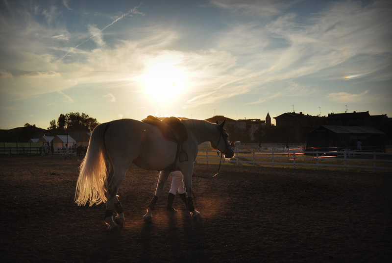 Sera, dopo una giornata intera di gare, di salti..Questa ragazza con il suo AMICO.. Una piccola passeggiata per entrambi, lo stesso passo, la stessa cadenza, una simbiosi creatasi da tanto "vissuto" insieme.. Non esiste più chi cavalca e chi è cavalcato..ma allo stesso livello, lo stesso passo stanco ma sereno, gli stivali per lei, le fasce per lui, i pantaloni bianchi e il mantello bianchi.. Verso una notte di meritato riposo per entrambi ... _________________ "Fotografare mi serve a non morire"
