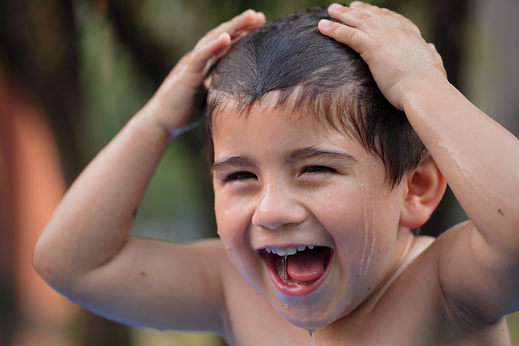 L'unica pecca è il non aver dato importanza al rivoletto che scende dal mento con una veloce diminuzione della focale o con un'inquadratura più bassa... anche tagliando via un po' di testa (per quanto belle le manine bagnate sopra la testa sarebbe stato preferibile, secondo me, mettere appunto in risalto il rivolo d'acqua che scende dal mento).