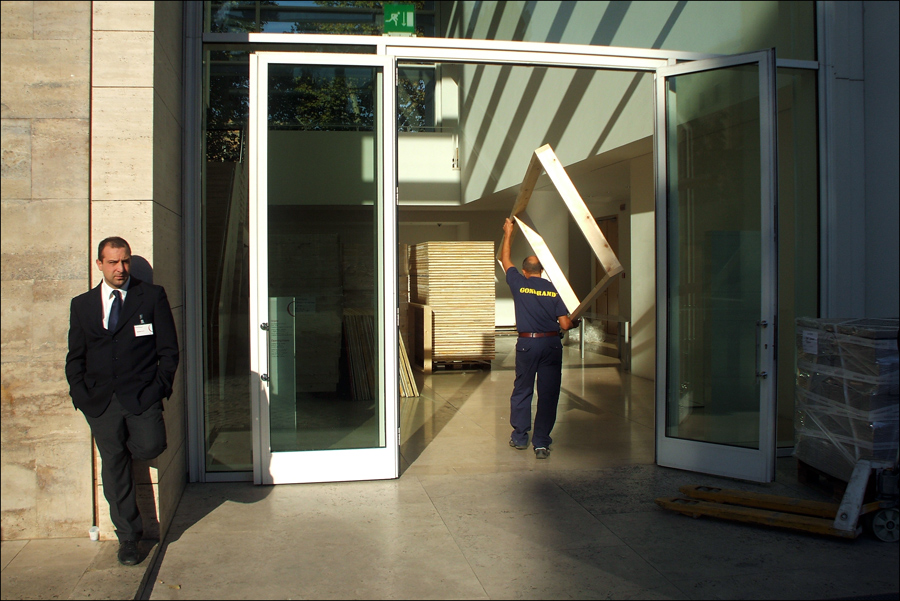 il bello sta proprio nella presenza dell'uomo incravattato, e nella scelta di lasciare i colori, c'è una bella luce.