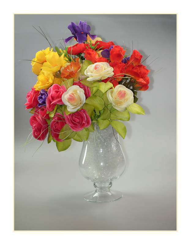 L'ombra dietro il vaso è troppo netta (dovresti diffondere maggiormente la luce) ed il vaso stesso pende vistosamente verso sx.