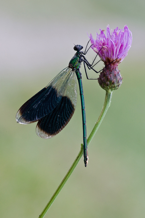 Deliziosa la damigella valorizzata da un bellissimo fiore che con il suo gambo arcuato dona all'immagine una certa dinamicità.
