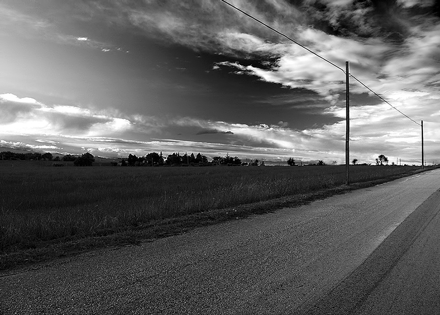 la parte di campo scura mette in relazione la strada con la parte di cielo sgombro