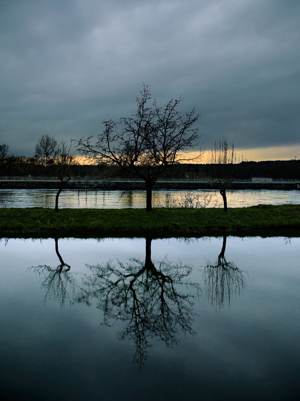 la parte superiore con gli alberi che si confondono con lo sfondo secondo me non va. molto meglio la parte in basso con il riflesso.