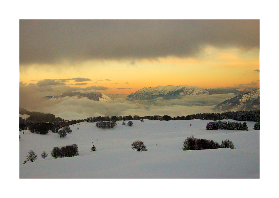 Colori caldi inseriti in un contesto piuttosto freddino ...e nuvole soffici a staccare tra i due piani principali...