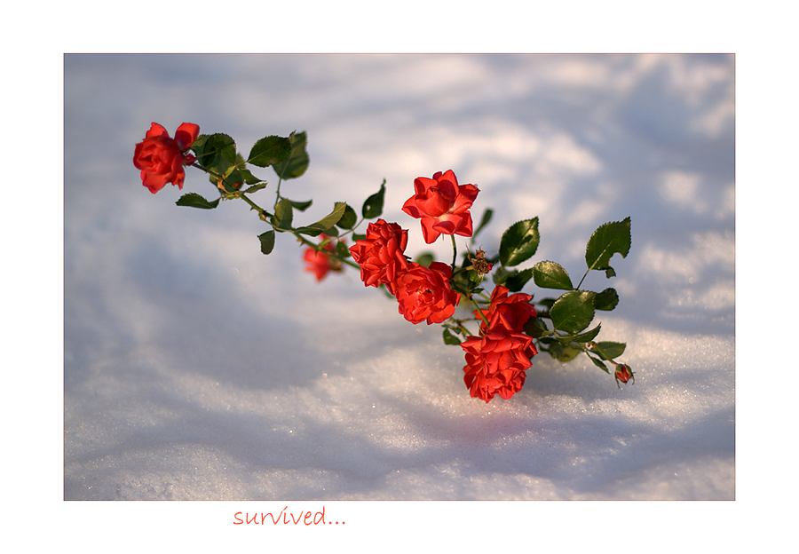 In particolare attira il contrasto tra i colori caldi, romantici, vitali della rosa e i colori freddi, tristi, piatti della neve; mi suscita la forza della sopravvivenza nonostante l'ambiente ostile.