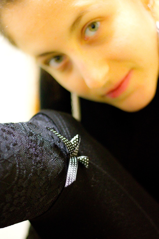 Quel polpaccio (?!) così mozzo in primissimo piano induce l'osservatore a cercarne il proseguo e il fatto che il fuoco non cada precisamente su quel grazioso fiocchetto ma poco prima contribuisce ad aumentare la confusione. Inoltre la resa dei colori è giallastra.