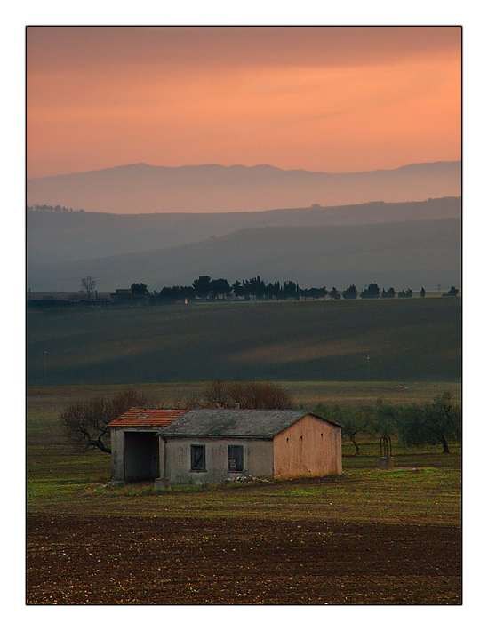 belle le tonalità dei colori cosi come i dolci profili delle colline e dei monti che accompagnano l'occhio sul bellissimo cielo rosato