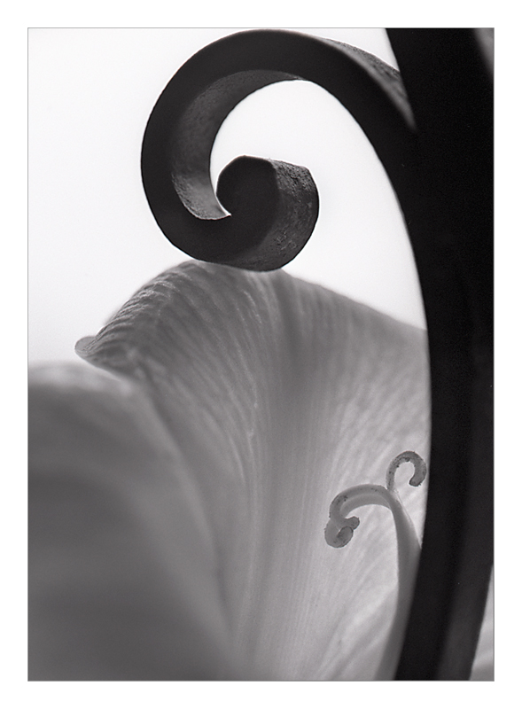 Grande occhio per questi riccioli su riccioli, intuizione e delicatezza del bianco e nero, e sontuoso sfocato per esaltare i particolari citati dalla visione.