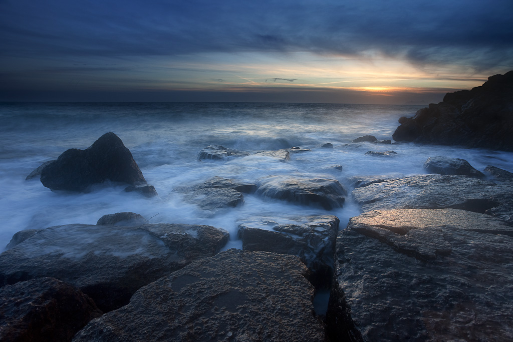 interessante questa ultima luce che lambisce il primo piano e buono il tempo di esposizione a disegnare il movimentom dell'acqua.
