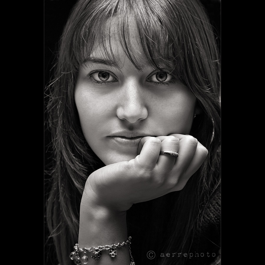 Sai già che questo ritratto mi piace molto . Non posso che ribadire il concetto: non si giudica certamente un lavoro solo dalla resa in sé e per sé, però però qui non si può restare che stupiti davanti al realismo della ripresa. Addirittura la tattilità delle guance e la trama della carnagione assolutamente percepibili. Ma lo sguardo è a vero rischio ipnotico . Eppure, senza scherzare, il bianco e nero qui è perfetto per i miei gusti; e non introduce alcuna durezza. So che tu usi, magari personalizzandolo ulteriormente, il metodo Rob Carr, e direi che lo hai piegato veramente al tuo servizio.