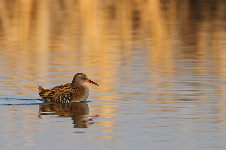 Alla prima luce del mattino un porciglione attraversa lo stagno.......