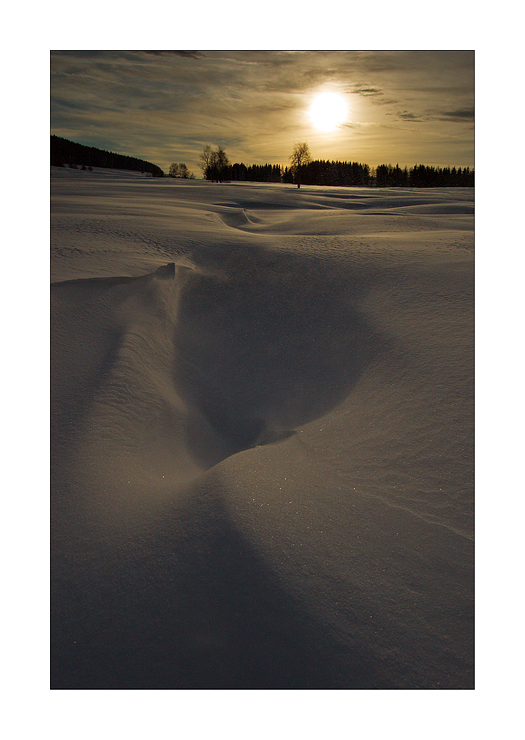 40 cm di neve fresca caduti tra domenica e lunedì hanno mutato il paesaggio,il vento che si è alzato nella notte ha contribuito a disegnare la neve.