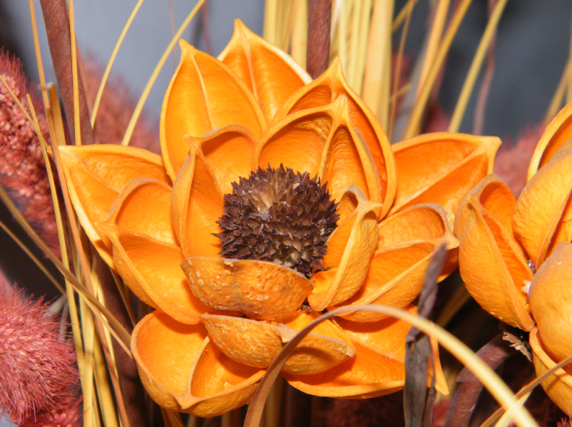 Penso sia una composizione di fiori secchi, quindi probabilmente era possibile togliere gli elementi di disturbo nei confronti del soggetto, come quello stelo che attraversa il fiore.