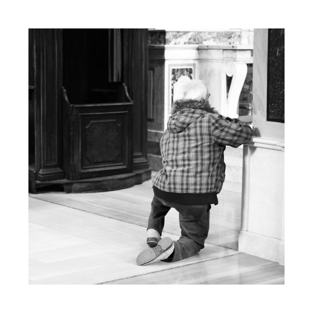 il confessionale con il suo scuro, rende il bianconero quasi un'azzardo, non vedo un'armonia cromatica da giustificare tale scelta...e a colori?