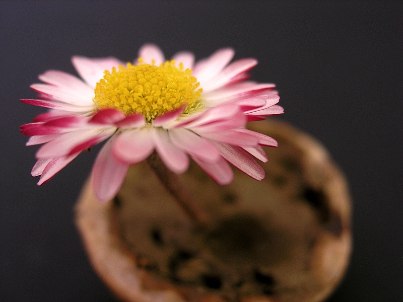 Per quanto riguarda l'idea, che ci azzecca una margherita con un guscio di noce ? A volte sforzarsi un po' a costruire una immagine (soprattutto se di still-life trattasi) può rendere l'immagine più interessante e comunicativa.