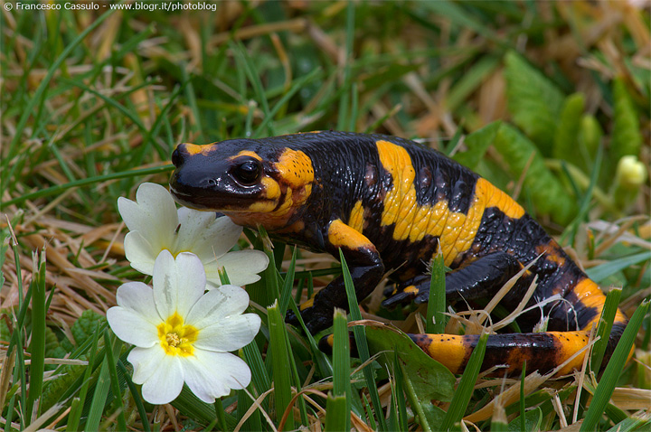 | La salamandra è davvero molto disponibile, quindi mi sono sbizzarrito con delle pose, ho cercato di valorizzare questo splendido anfibio. In questo caso ho cercato di ambientare la salamandra con il partao ed i fiori di stagione, ovvero una primula. Scattato con Sigma 70-300 a 200mm f/18, mia intenzione infatti era quella di rendere si ambientata la salamandra, ma anche di non avere uno sfondo troppo duro, che con il 55mm Macro avrei certamente ottenuto. Come sempre ben accette critiche e suggerimenti. Grazie a tutti. |
